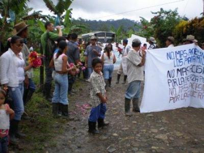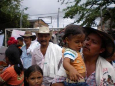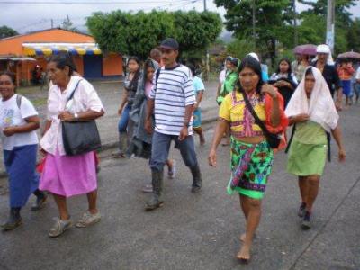 Die Indigenas schliessen sich aus Solidaritaet der Friedensgemeinde beim Protestmarsch an